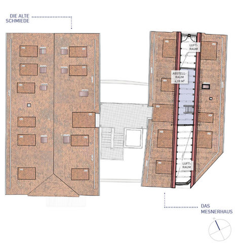 sowie ein Treppenhaus angedacht. Diese werden in einem neu zu errichtenden Anbau